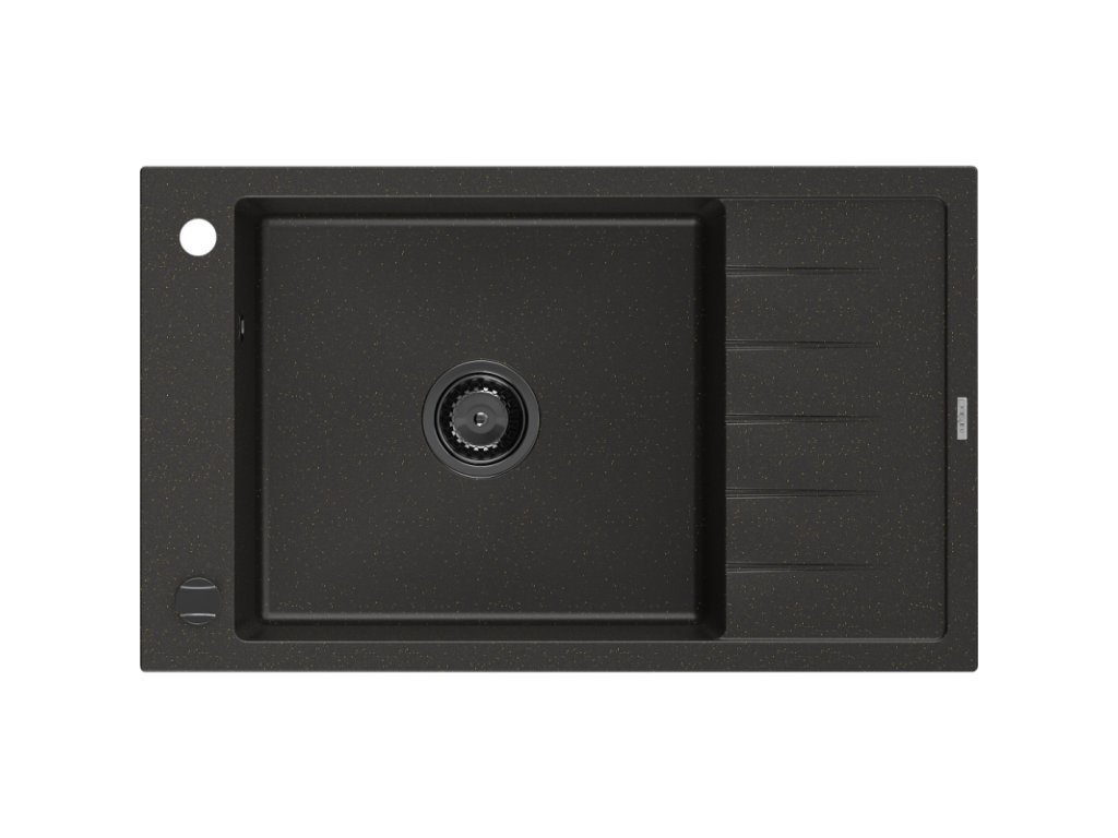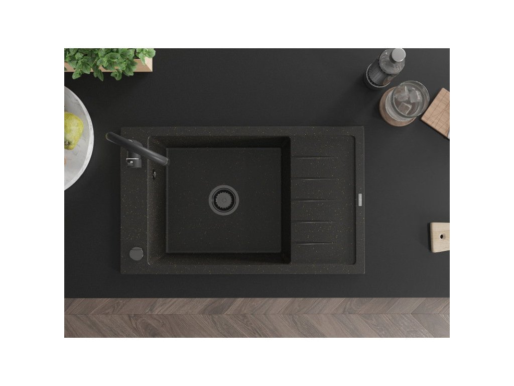 Granitový drez Mexen Elias s 1 misou a odkapávačom 795 x 480 mm, čierna/zlatá metalíza, čierny sifón - 6511791005-75-B