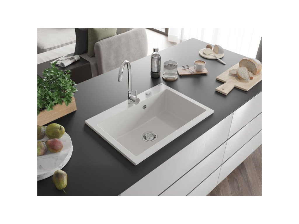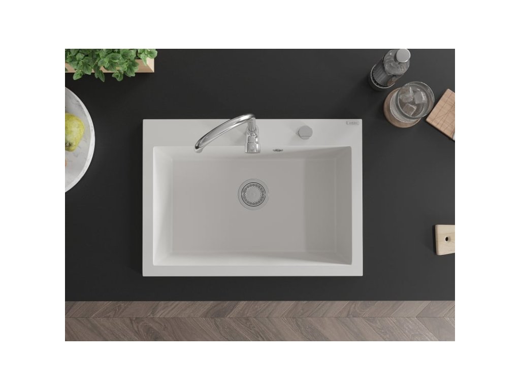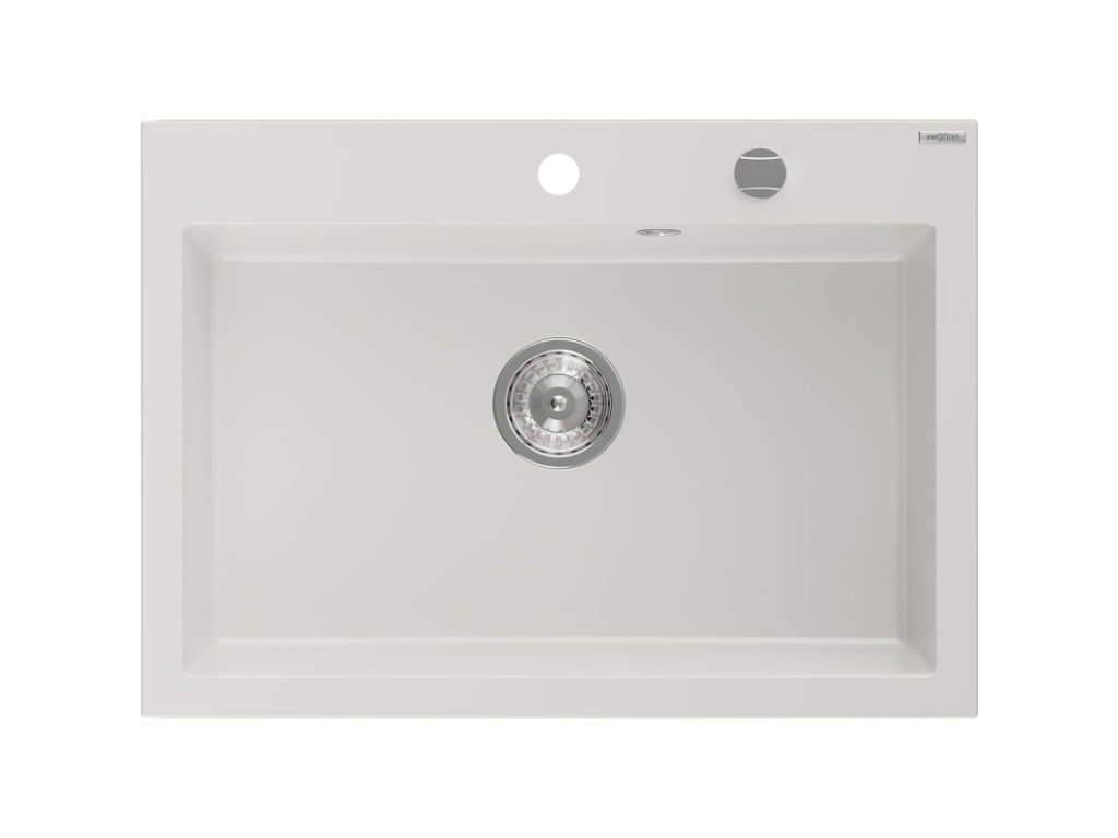 Granitový drez Mexen Elix s 1 misou, 700 x 500 mm, biely, chrómový sifón - 6526701005-20