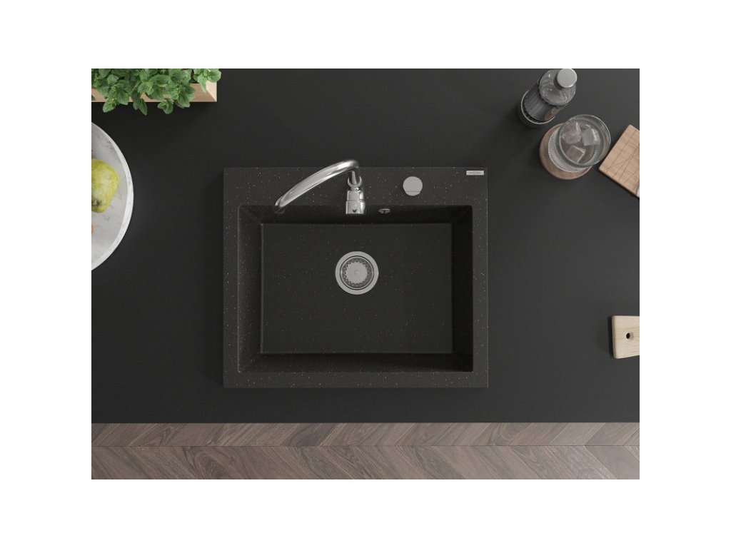 Granitový drez Mexen Elix s 1 misou 600 x 500 mm, čierna/zlatá metalíza, chrómový sifón - 6525601005-75