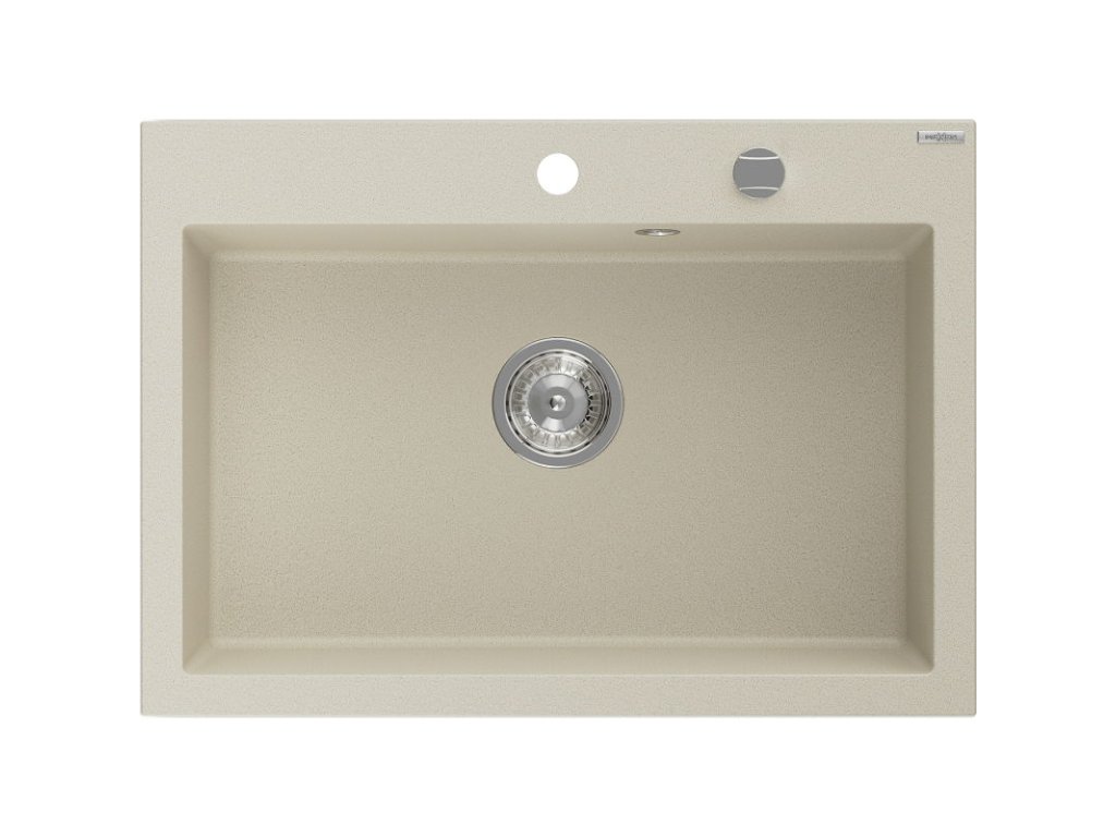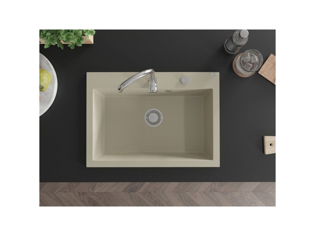 Granitový drez Mexen Elix s 1 misou 700 x 500 mm, béžový, chrómový sifón - 6526701005-69