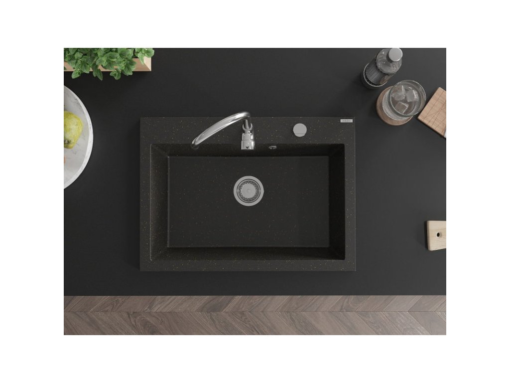 Granitový drez Mexen Elix s 1 misou 700 x 500 mm, čierna/zlatá metalíza, chrómový sifón - 6526701005-75
