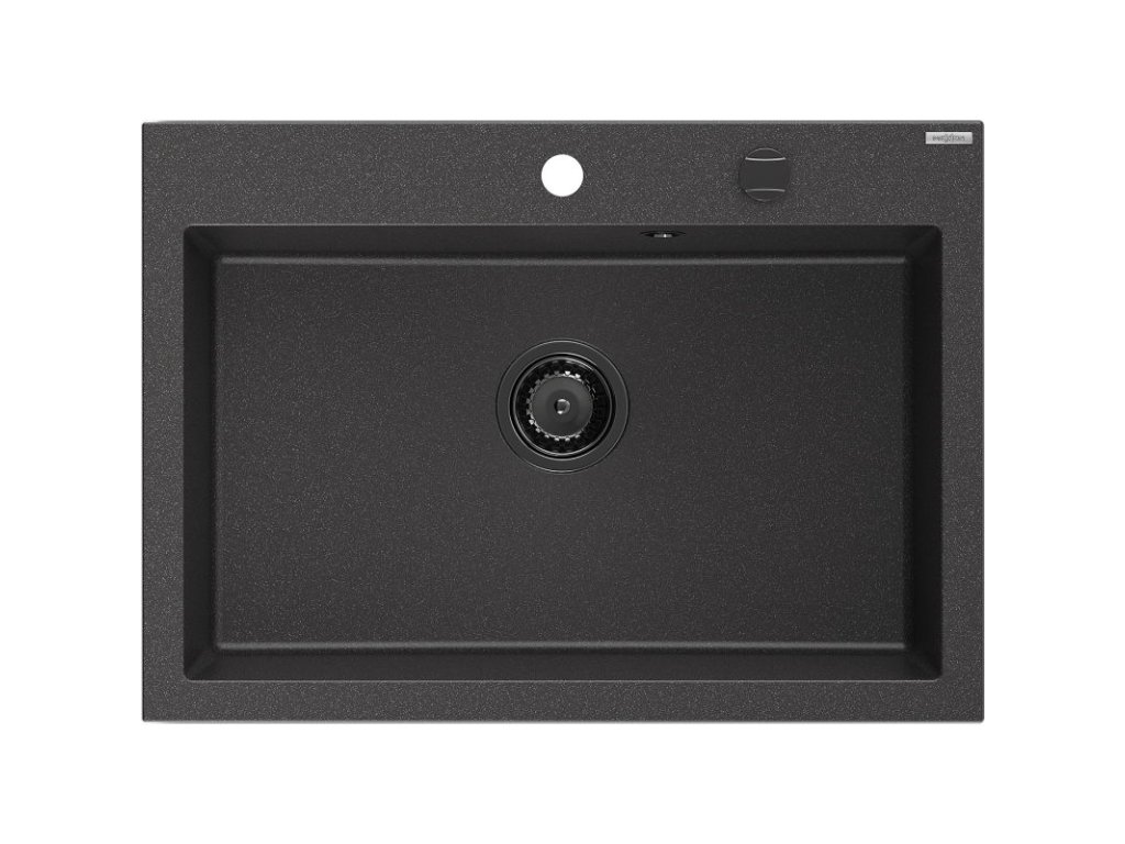 Granitový drez Mexen Elix s 1 misou 700 x 500 mm, čierny bodkovaný, čierny sifón - 6526701005-76-B
