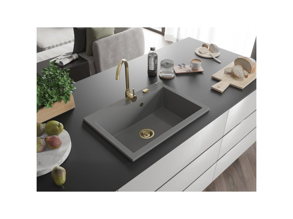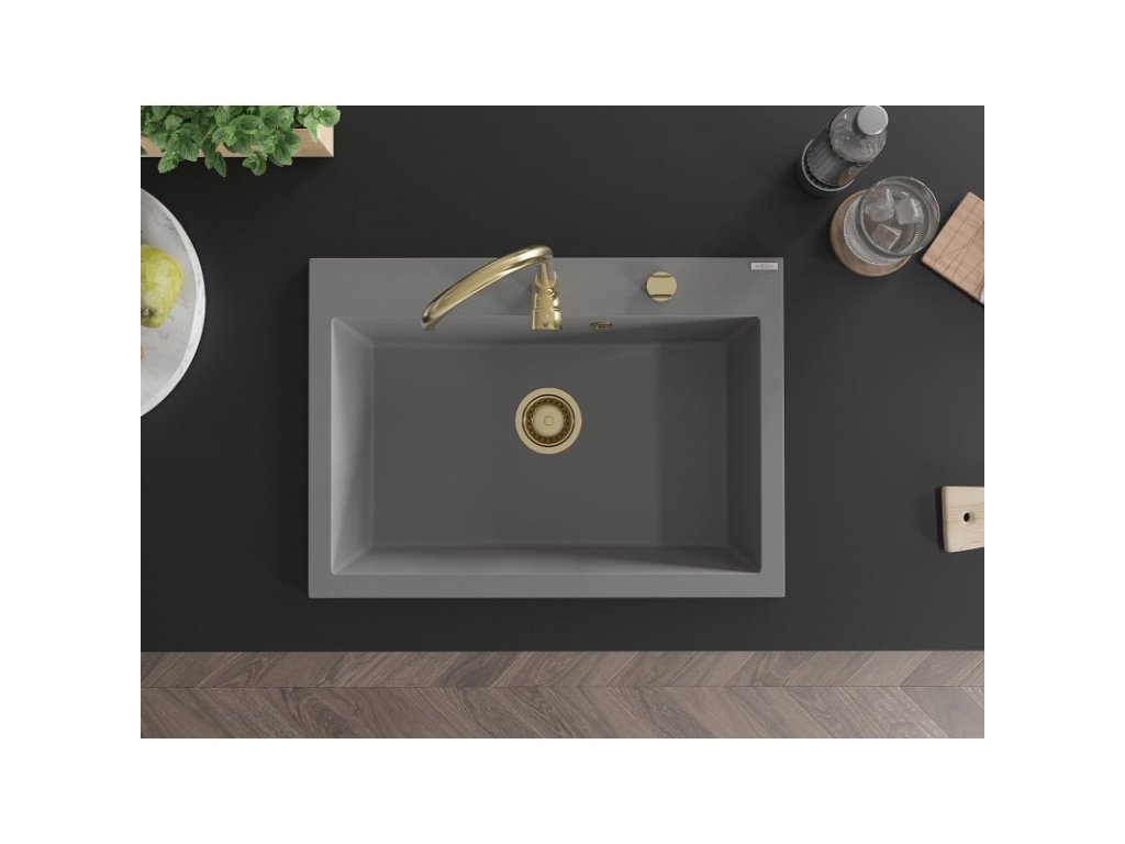 Granitový drez Mexen Elix s 1 misou 700 x 500 mm, sivý, zlatý sifón - 6526701005-71-G