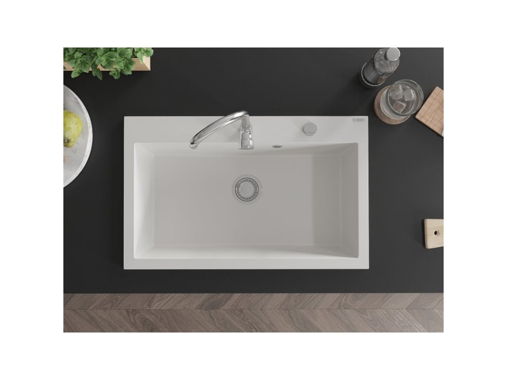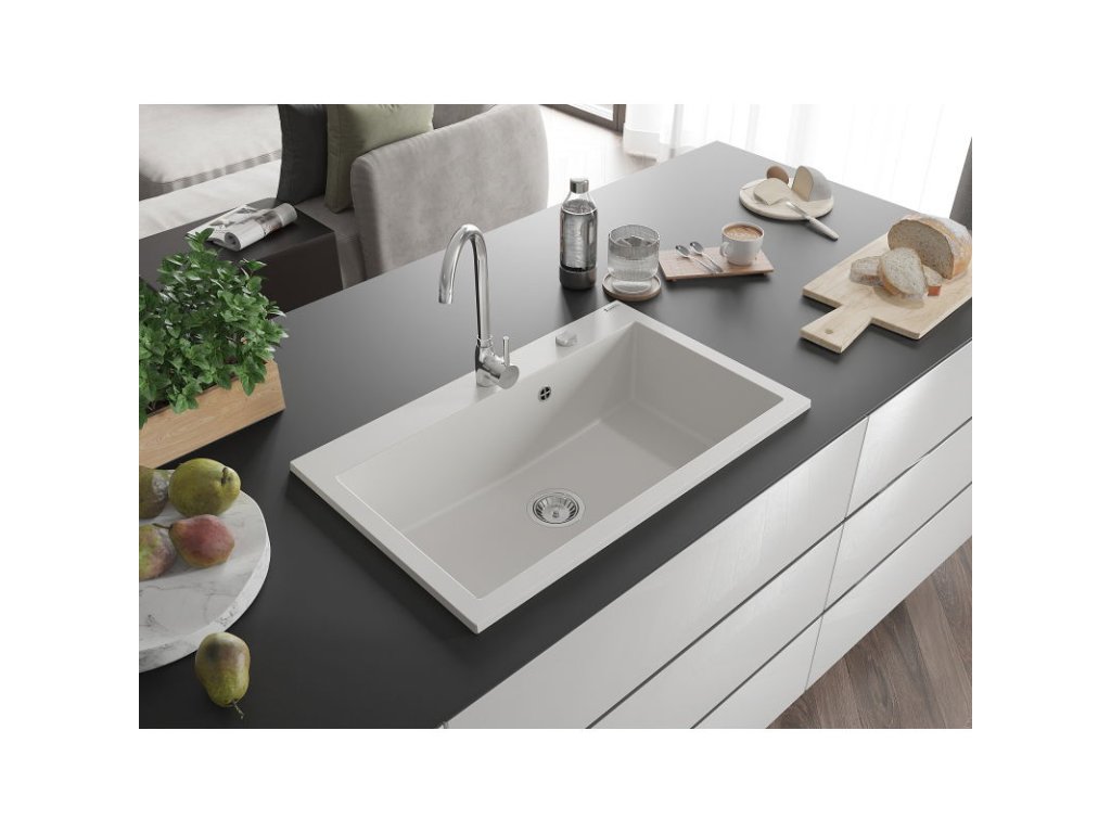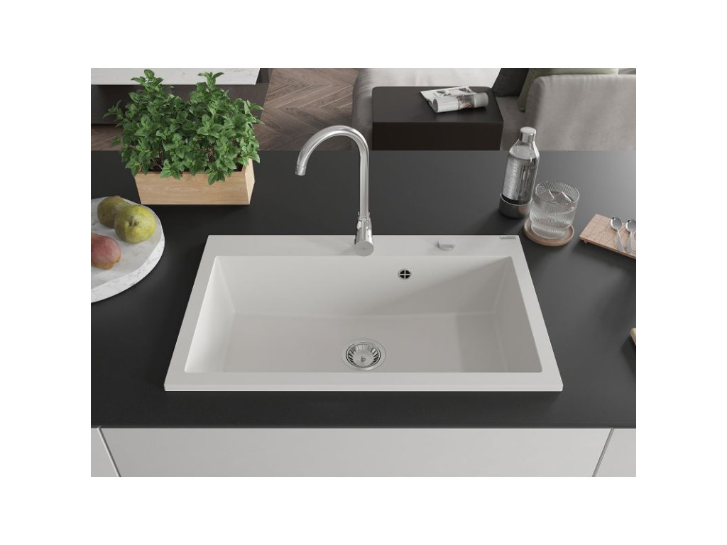 Granitový drez Mexen Elix s 1 misou 800 x 500 mm, biely, chrómový sifón - 6527801005-20