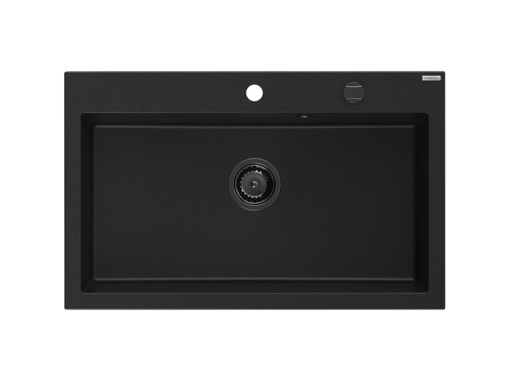 Granitový drez Mexen Elix s 1 misou 800 x 500 mm, čierny, zlatý sifón - 6527801005-77-B