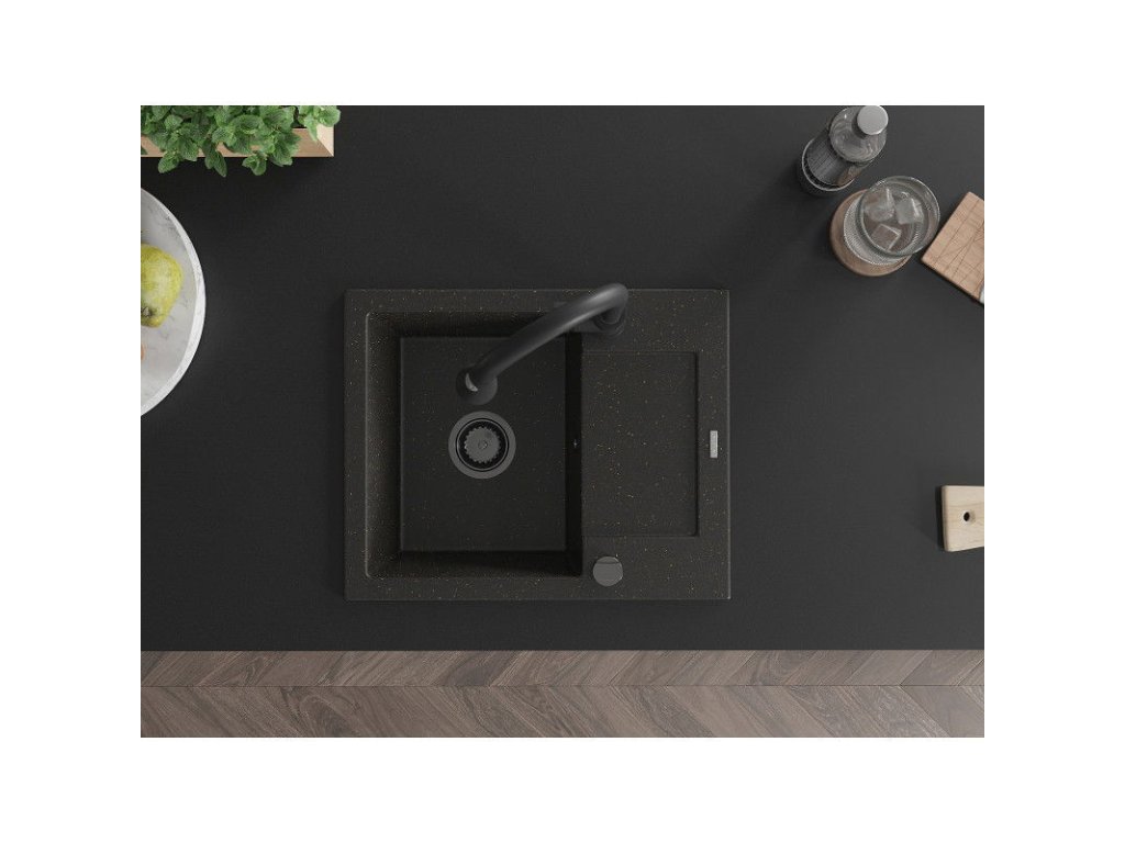 Granitový drez Mexen Enzo s 1 misou, odkapávačom a batériou Elia, čierna/zlatá metalíza - 6506-75-670101-70-B