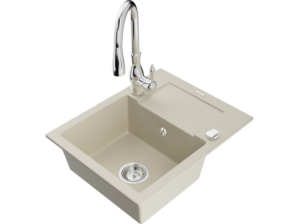 Granitový drez Mexen Enzo s 1 misou, odkapávačom a batériou Savita, béžový - 6506-69-672601-00