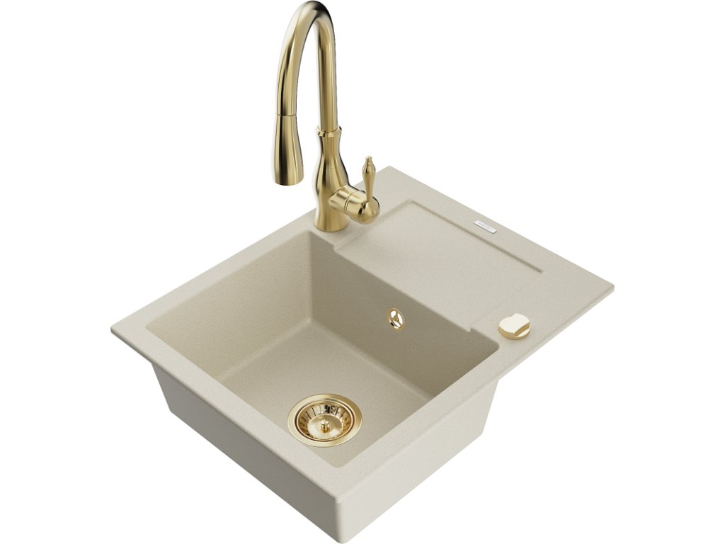 Granitový drez Mexen Enzo s 1 misou, odkapávačom a batériou Savita, béžový - 6506-69-672601-50