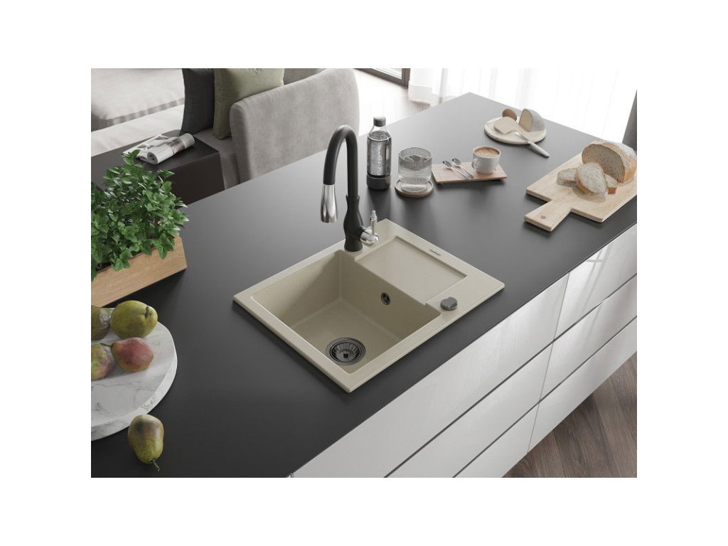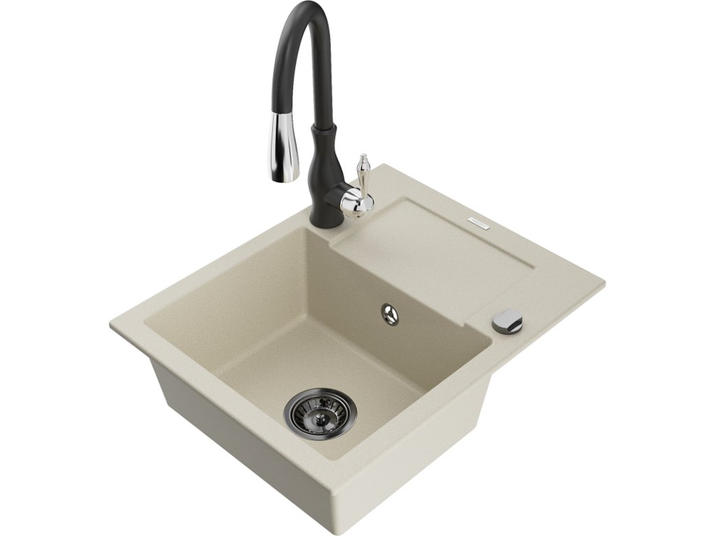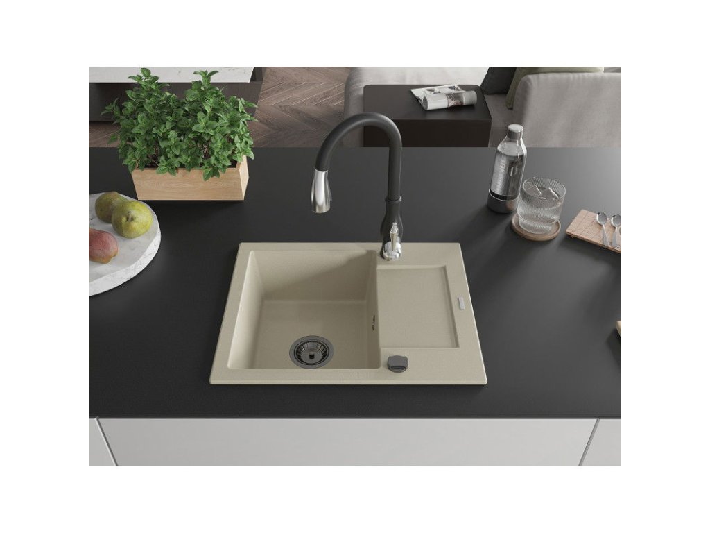 Granitový drez Mexen Enzo s 1 misou, odkapávačom a batériou Savita, béžový - 6506-69-672601-70