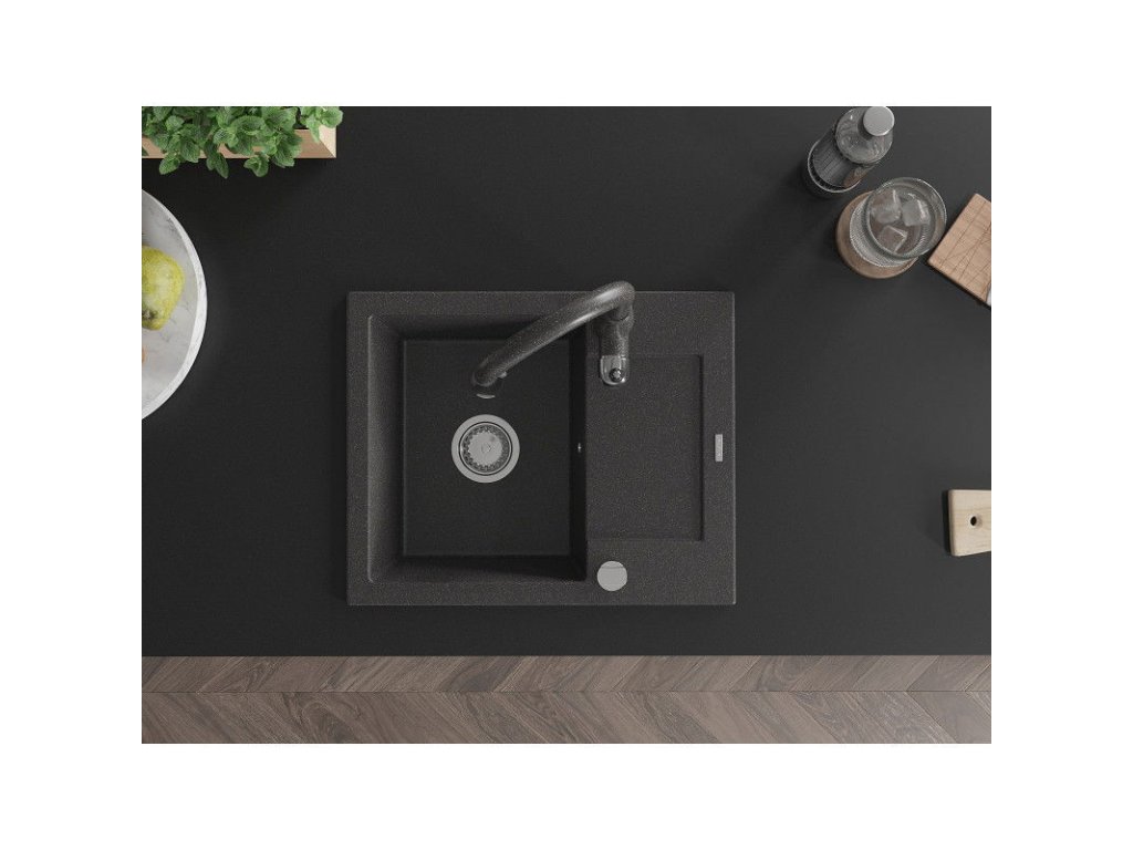 Granitový drez Mexen Enzo s 1 misou, odkapávačom a batériou Savita, čierna škvrnitá - 6506-76-672601-76