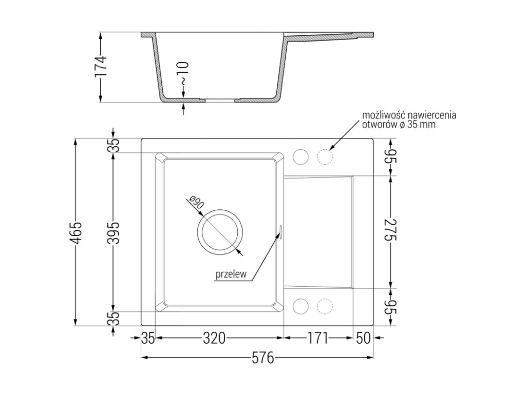 Dva ďalšie otvory pod výliskom ø35 na vlastné dierovanie