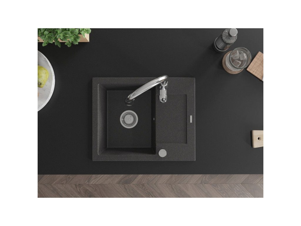 Granitový drez Mexen Enzo s 1 misou, odkapávačom a batériou Savita, čierny bodkovaný - 6506-76-672601-00