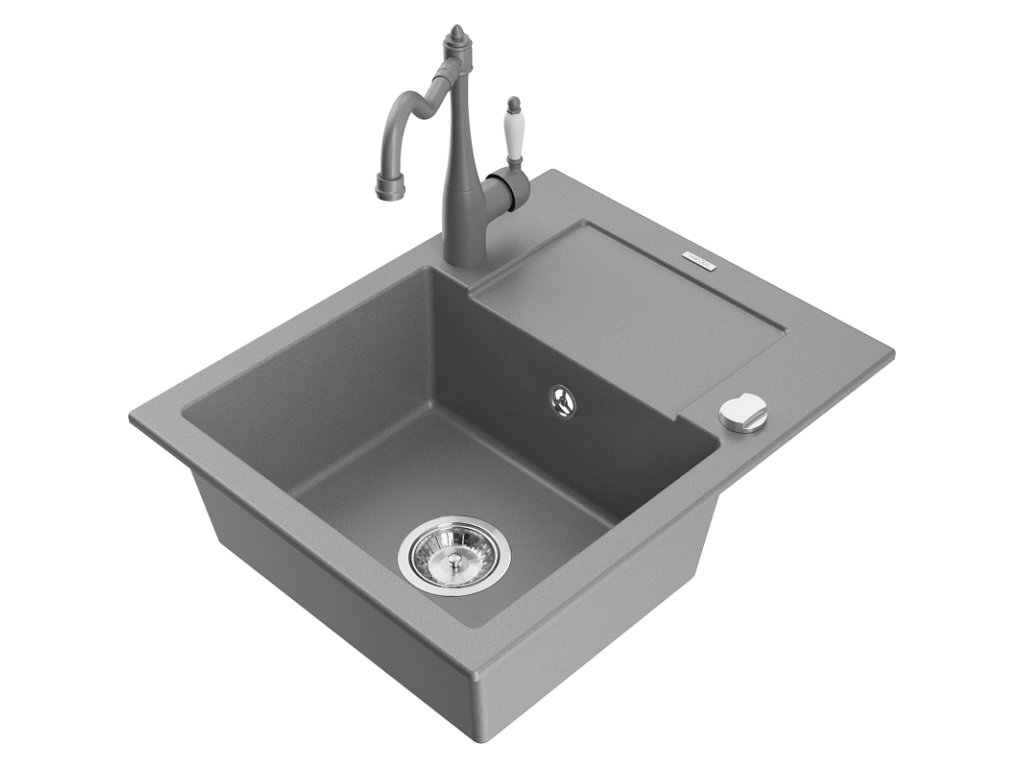 Granitový drez Mexen Enzo s 1 misou, odkapávačom a kuchynskou batériou Carla, sivý - 6506-71-670700-71