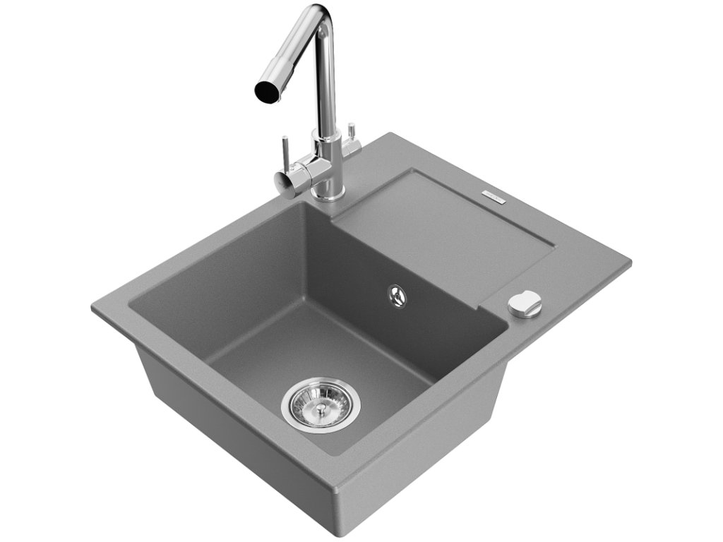 Granitový drez Mexen Enzo s 1 misou, odkapávačom a kuchynskou batériou Duero, sivý - 6506-71-671600-00