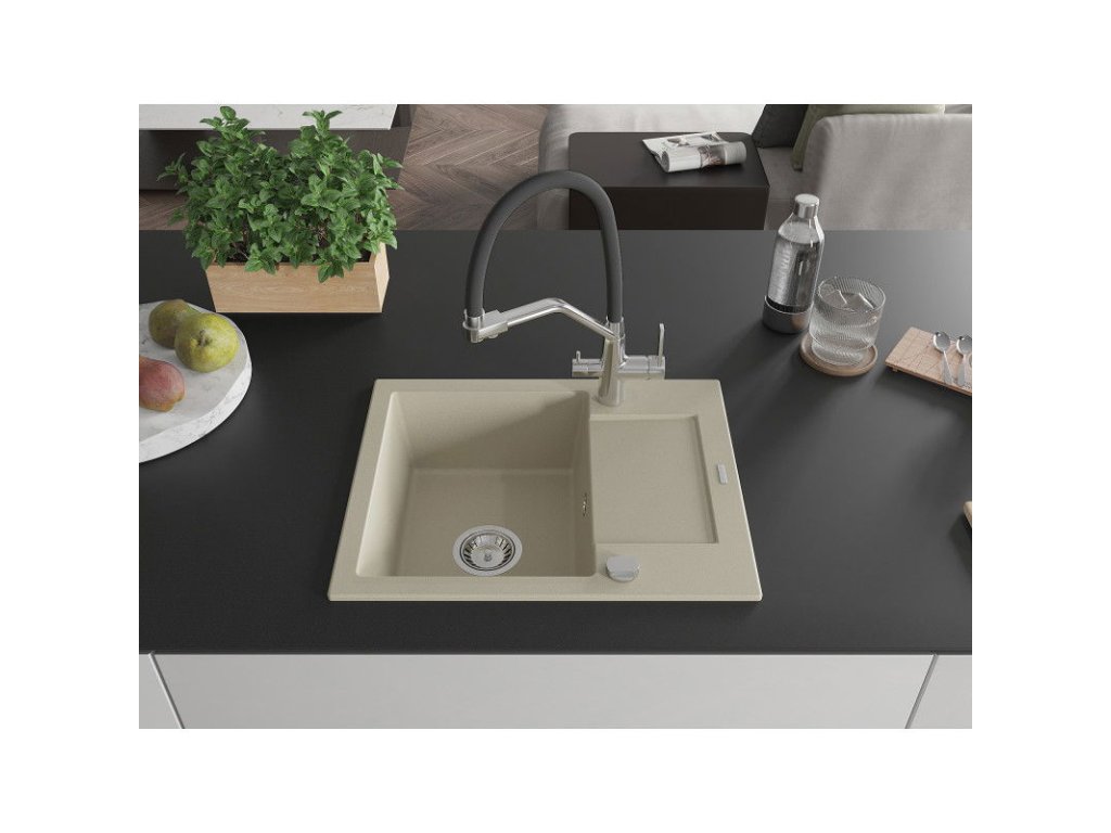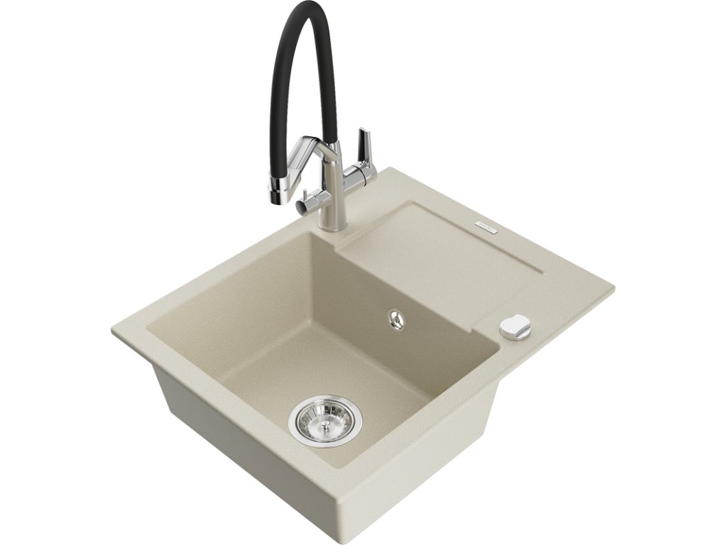 Granitový drez Mexen Enzo s 1 misou, odkapávačom a kuchynskou batériou Duo, béžový - 6506-69-671701-07