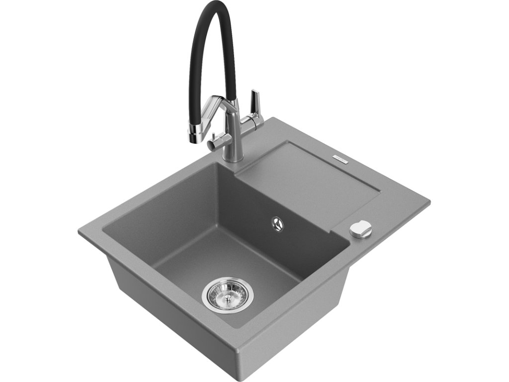 Granitový drez Mexen Enzo s 1 misou, odkapávačom a kuchynskou batériou Duo, sivý - 6506-71-671701-07