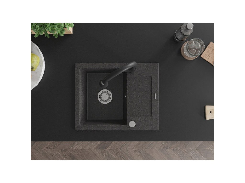 Granitový drez Mexen Enzo s 1 misou, odkapávačom a kuchynskou batériou Elia, čierna škvrnitá - 6506-76-670101-70