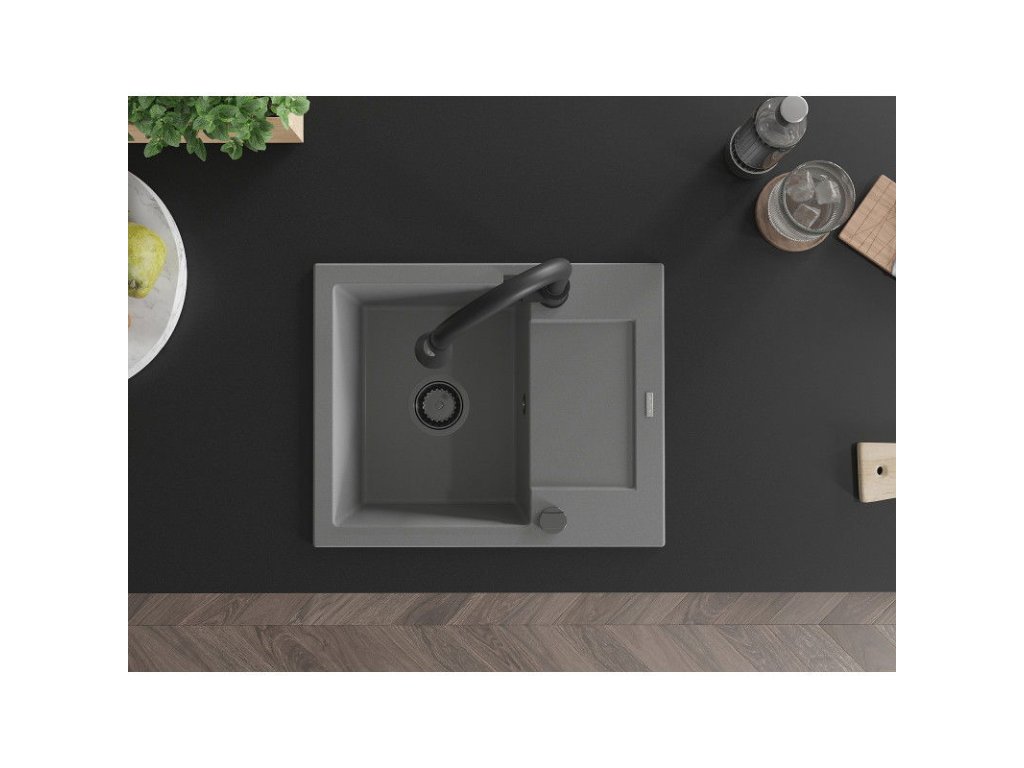 Granitový drez Mexen Enzo s 1 misou, odkapávačom a kuchynskou batériou Elia, sivý - 6506-71-670101-70-B