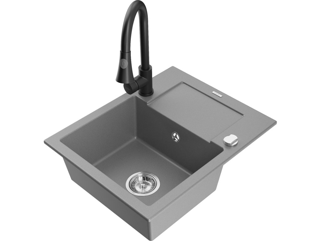 Granitový drez Mexen Enzo s 1 misou, odkapávačom a kuchynskou batériou Elia, sivý - 6506-71-670101-70