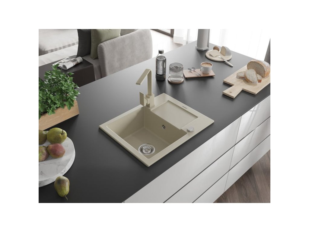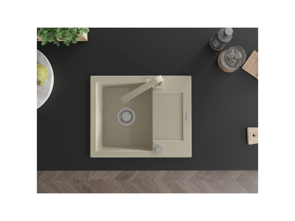 Granitový drez Mexen Enzo s 1 misou, odkapávačom a kuchynskou batériou Rita, béžový - 6506-69-670300-69