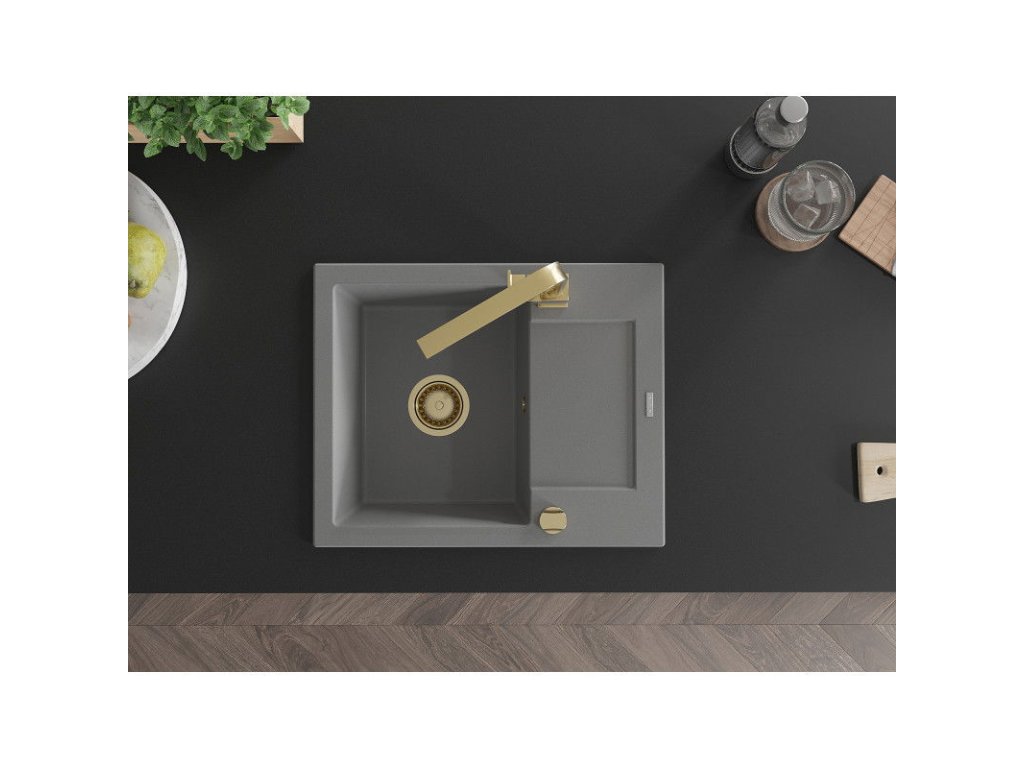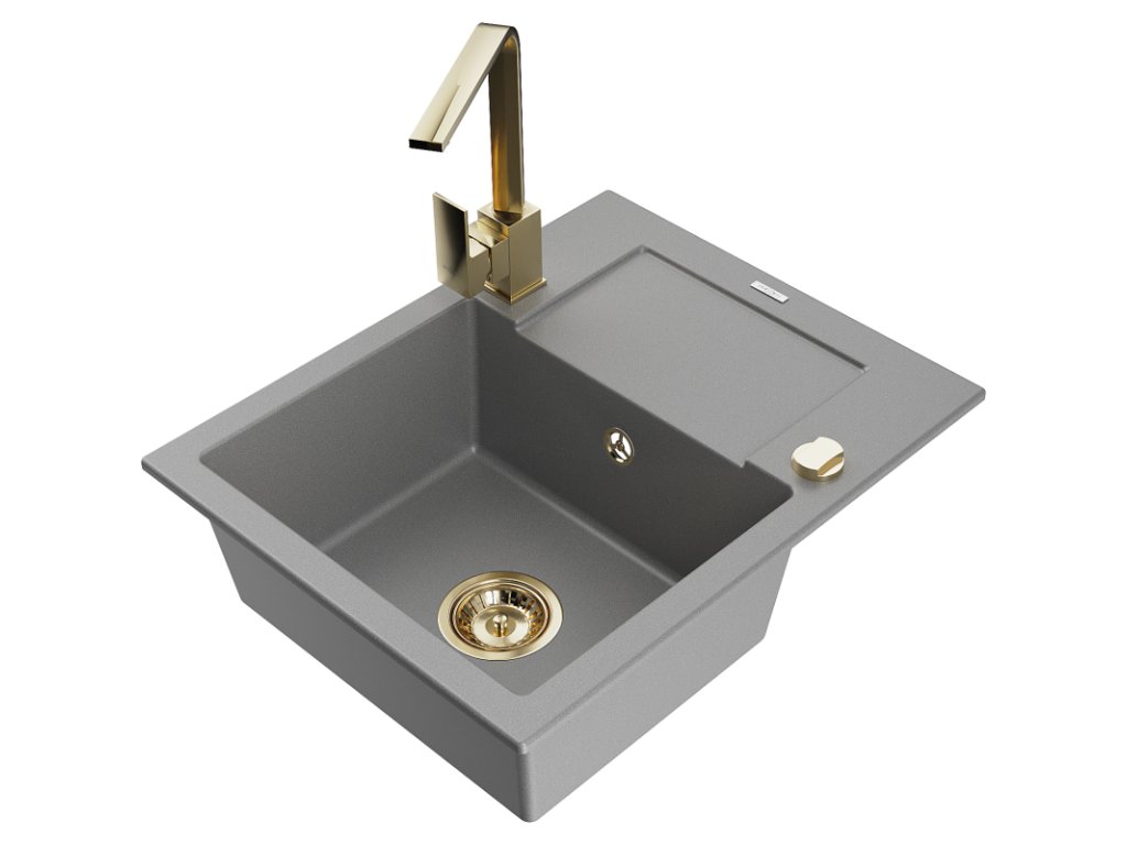 Granitový drez Mexen Enzo s 1 misou, odkapávačom a kuchynskou batériou Rita, sivý - 6506-71-670300-50