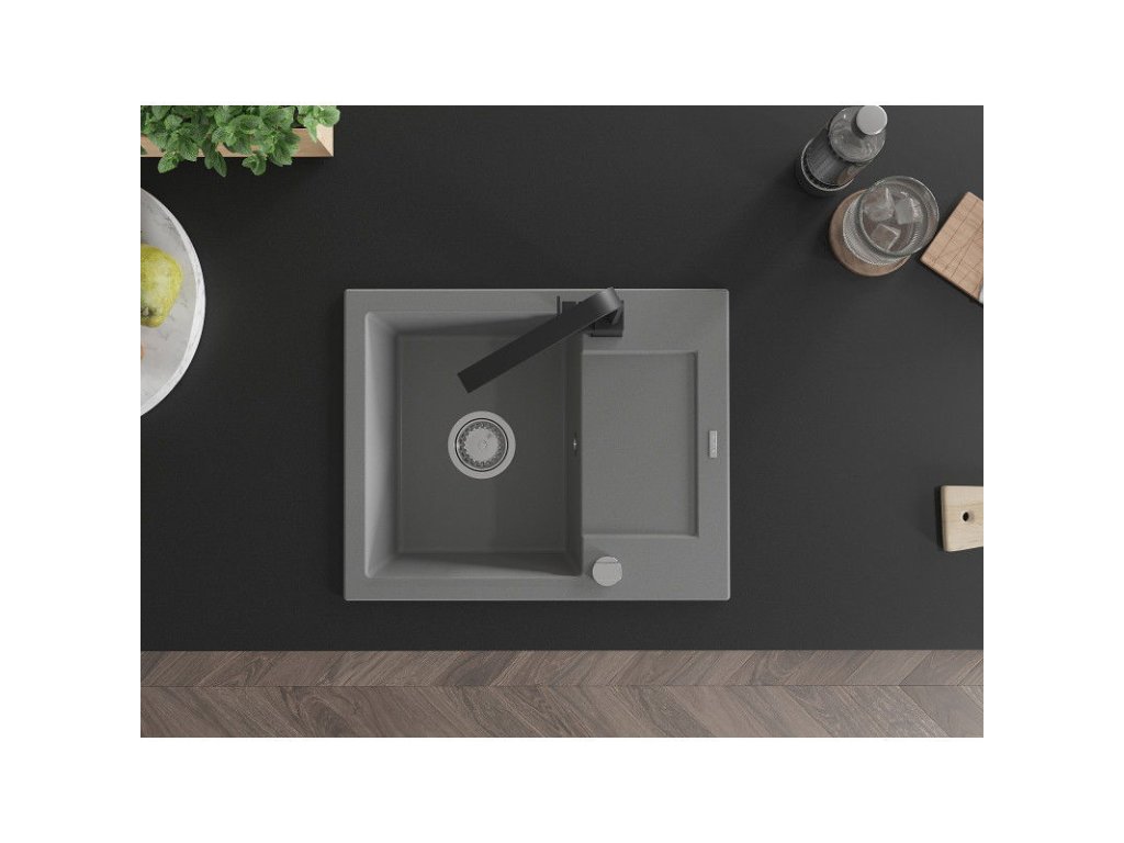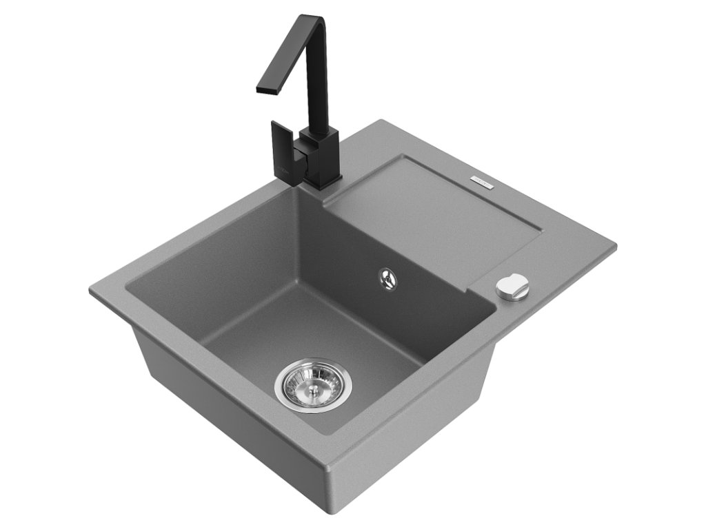 Granitový drez Mexen Enzo s 1 misou, odkapávačom a kuchynskou batériou Rita, sivý - 6506-71-670300-70