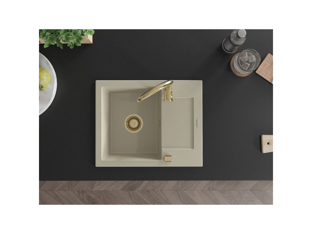 Granitový drez Mexen Enzo s 1 misou, odkapávačom a kuchynskou batériou Telma, béžový - 6506-69-670200-50