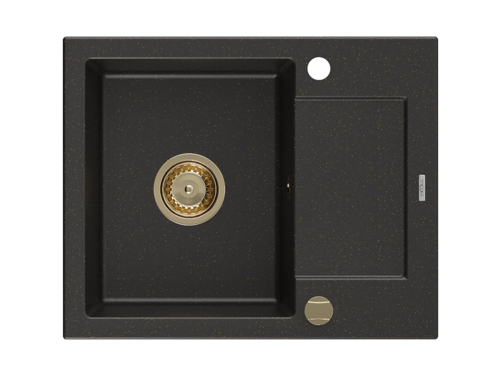 Granitový drez Mexen Enzo s 1 misou a odkapávačom 576 x 465 mm, čierna/zlatá metalíza, zlatý sifón - 6506571005-75-G