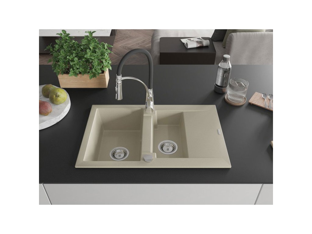 Granitový drez Mexen Gaspar s 1,5 miskou, odkapávačom a kuchynskou batériou Aster, béžový - 6507-69-73450-07