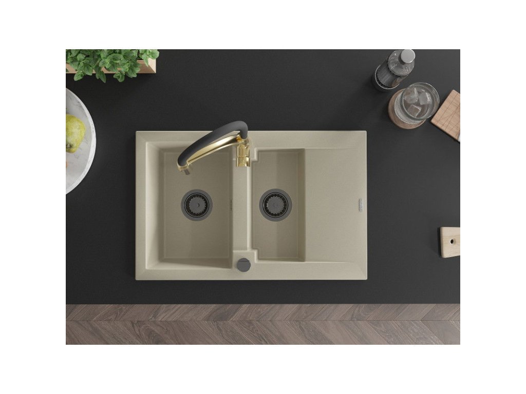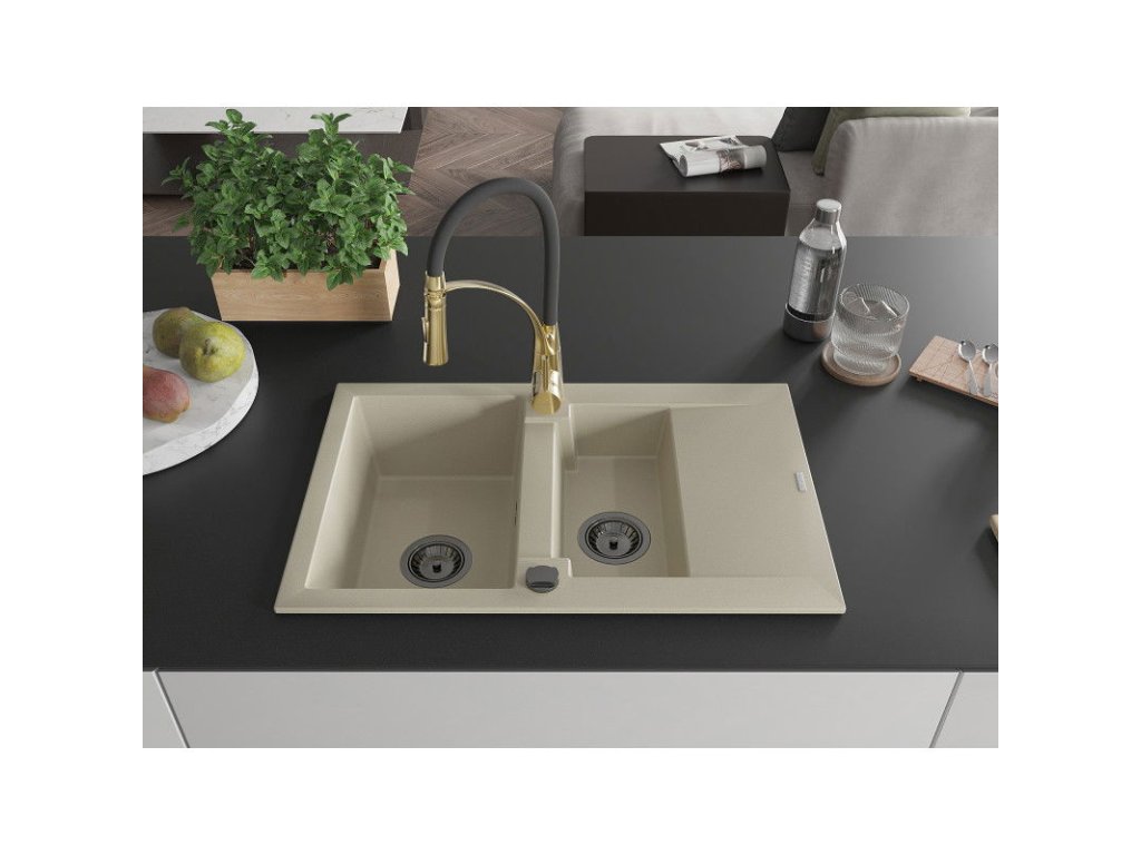 Granitový drez Mexen Gaspar s 1,5 miskou, odkapávačom a kuchynskou batériou Aster, béžový - 6507-69-73450-57-B