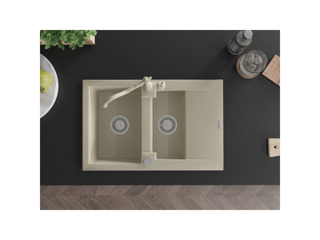 Granitový drez Mexen Gaspar s 1,5 miskou, odkapávačom a kuchynskou batériou Carla, béžový - 6507-69-670700-69