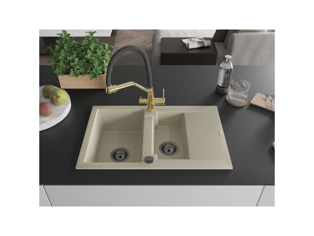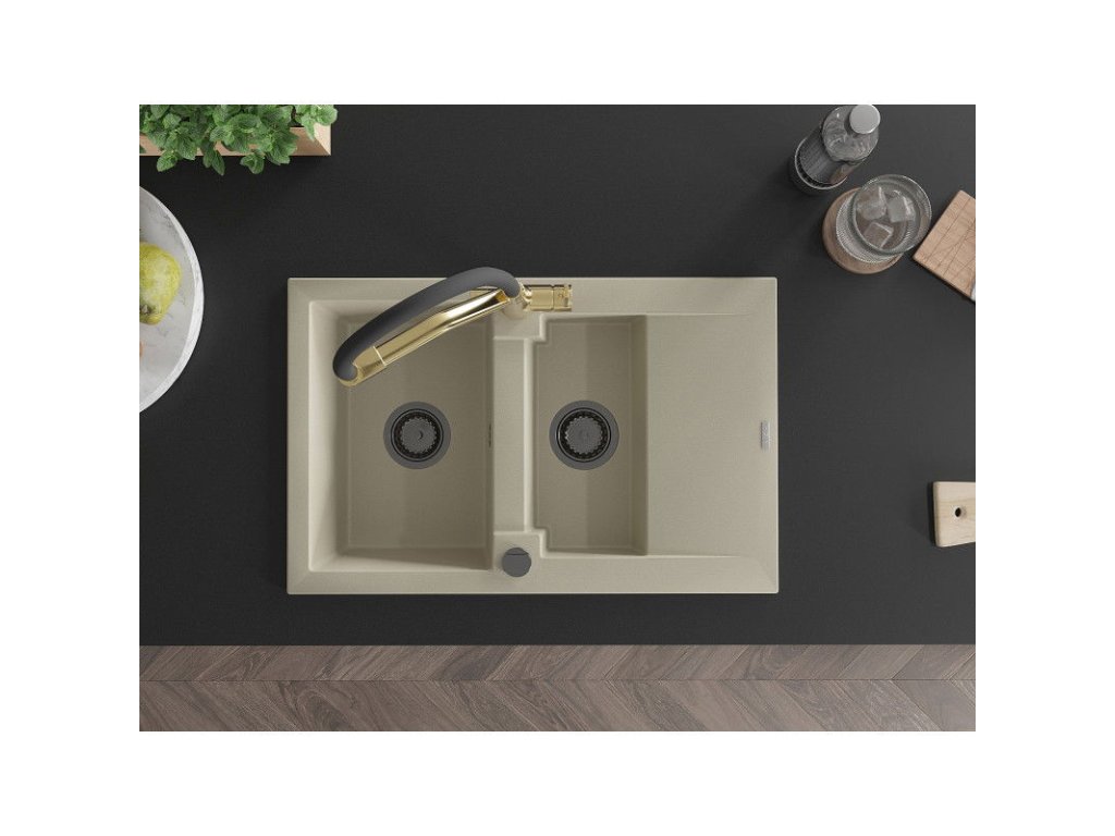 Granitový drez Mexen Gaspar s 1,5 miskou, odkapávačom a kuchynskou batériou Duo, béžový - 6507-69-671701-57-B