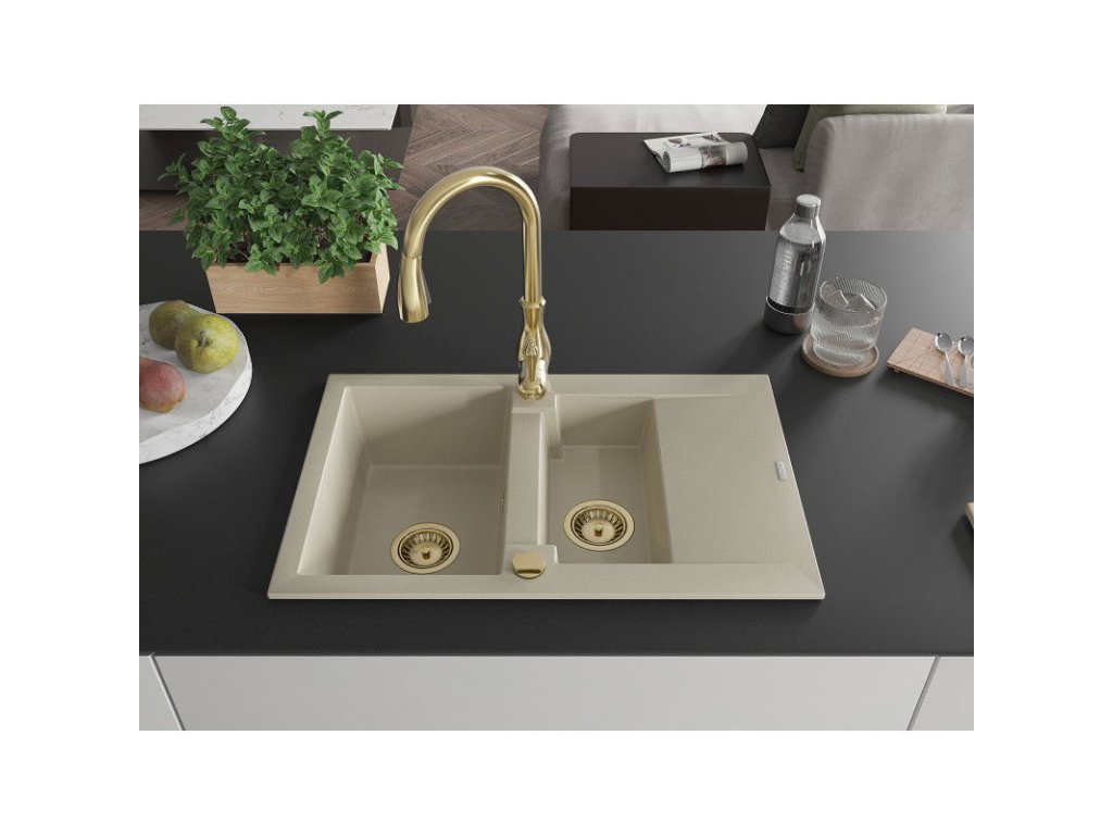 Granitový drez Mexen Gaspar s 1,5 miskou, odkapávačom a kuchynskou batériou Savita, béžový - 6507-69-672601-50