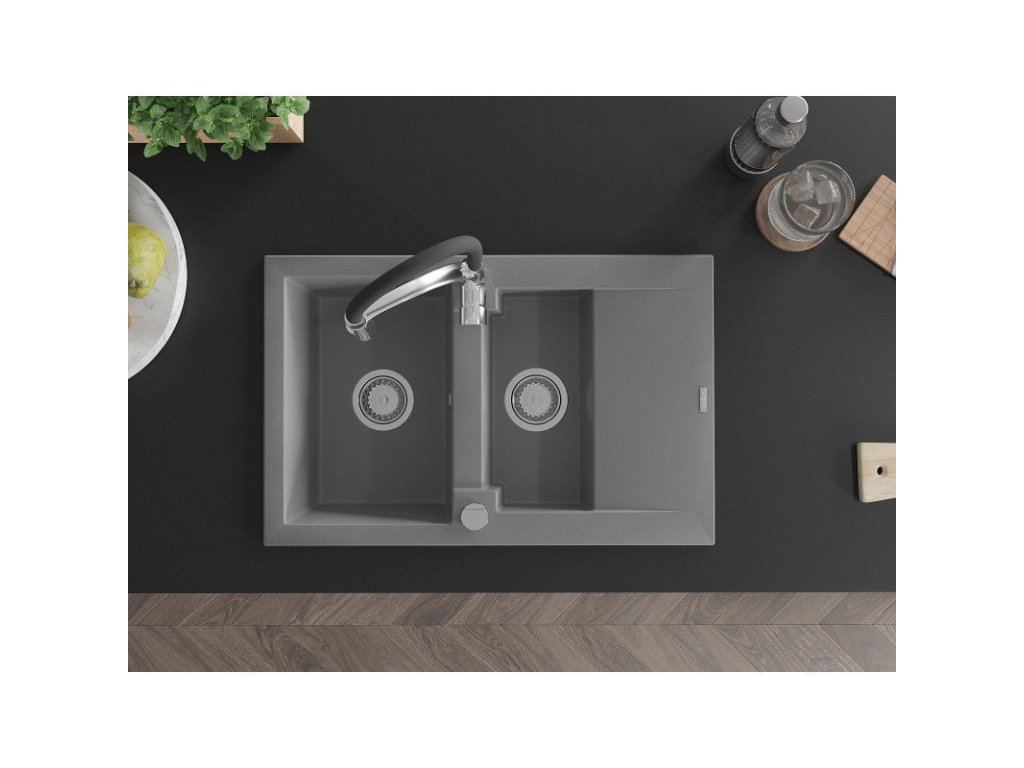 Granitový drez Mexen Gaspar s 1,5 misky, odkapávačom a kuchynskou batériou Aster, sivý - 6507-71-73450-07