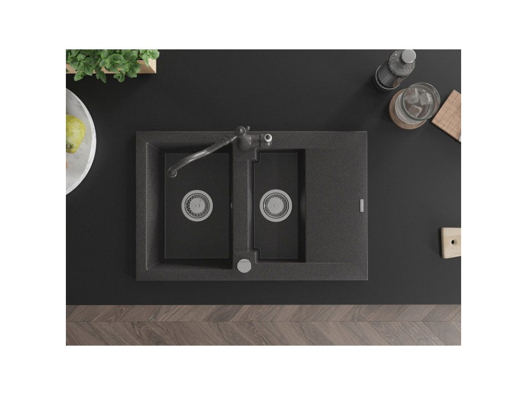Granitový drez Mexen Gaspar s 1,5 misky, odkapávačom a kuchynskou batériou Carla, čierna škvrnitá - 6507-76-670700-76