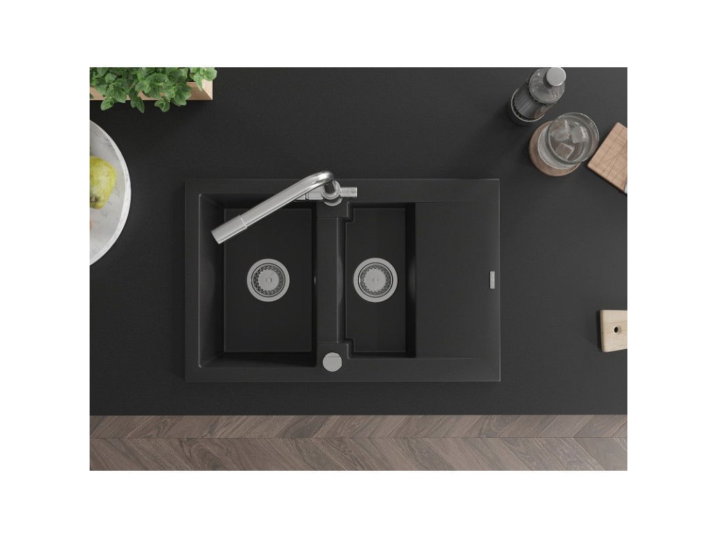 Granitový drez Mexen Gaspar s 1,5 misky, odkapávačom a kuchynskou batériou Duero, čierny - 6507-77-671600-00