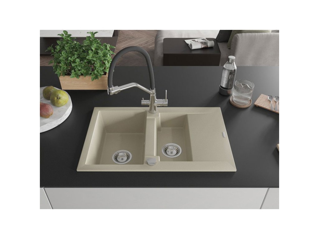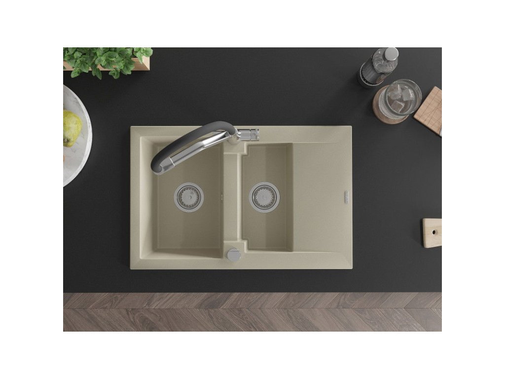 Granitový drez Mexen Gaspar s 1,5 misky, odkapávačom a kuchynskou batériou Duo, béžový - 6507-69-671701-07