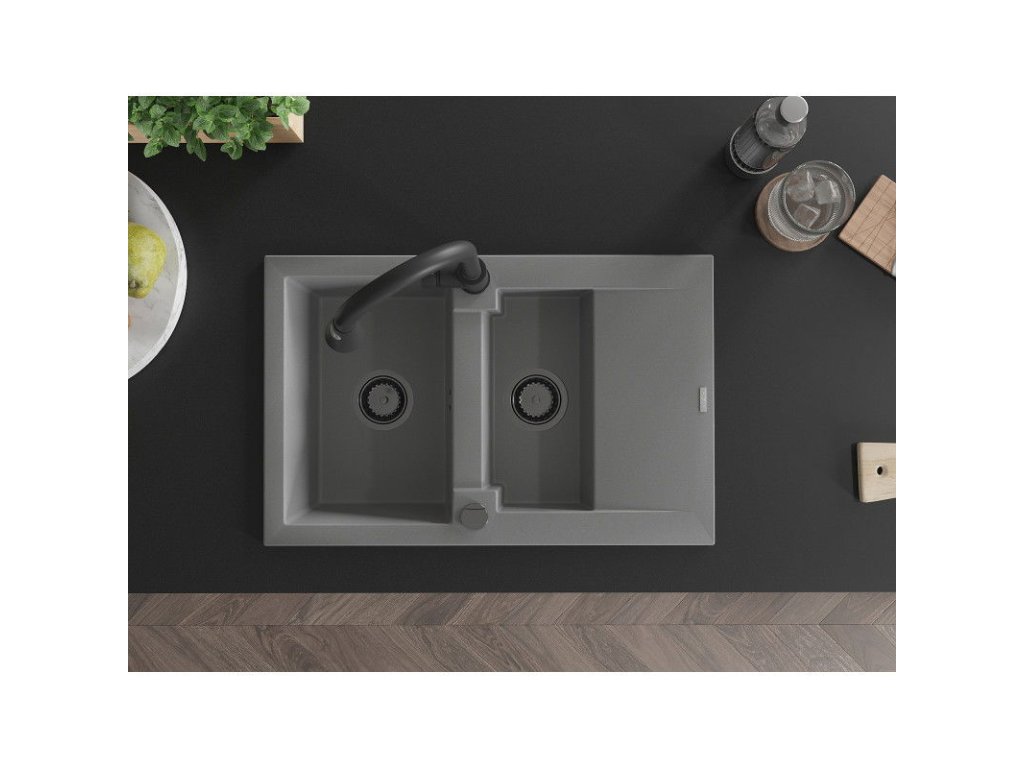 Granitový drez Mexen Gaspar s 1,5 misky, odkapávačom a kuchynskou batériou Elia, sivý - 6507-71-670101-70-B
