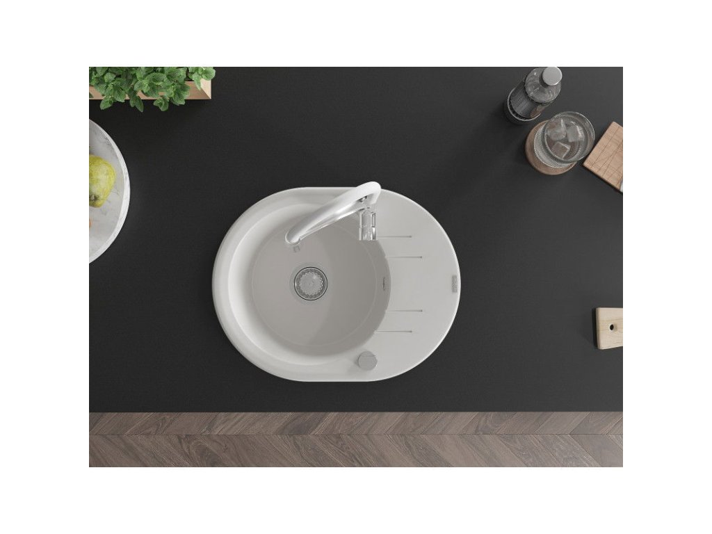 Granitový drez Mexen Kevin s 1 misou, odkapávačom a kuchynskou batériou Aster, biely - 6517-20-73450-02