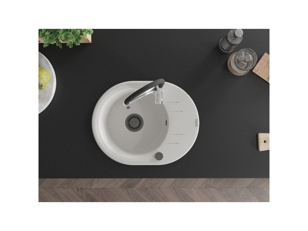 Granitový drez Mexen Kevin s 1 misou, odkapávačom a kuchynskou batériou Aster, biely - 6517-20-73450-07-B