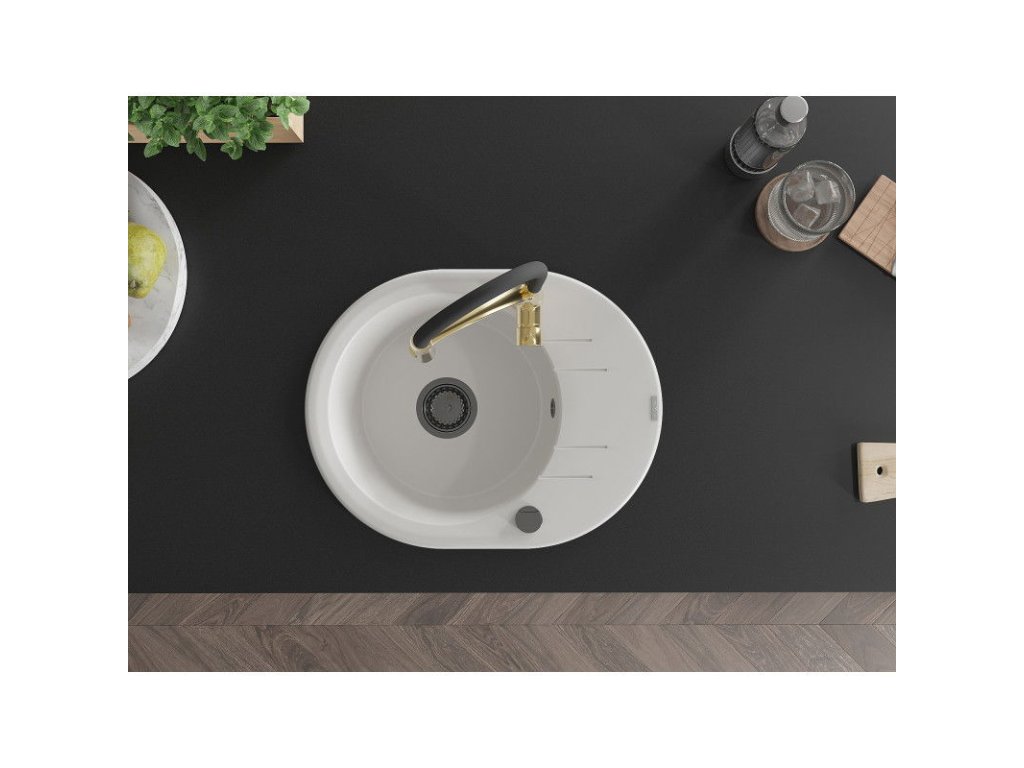 Granitový drez Mexen Kevin s 1 misou, odkapávačom a kuchynskou batériou Aster, biely - 6517-20-73450-57-B