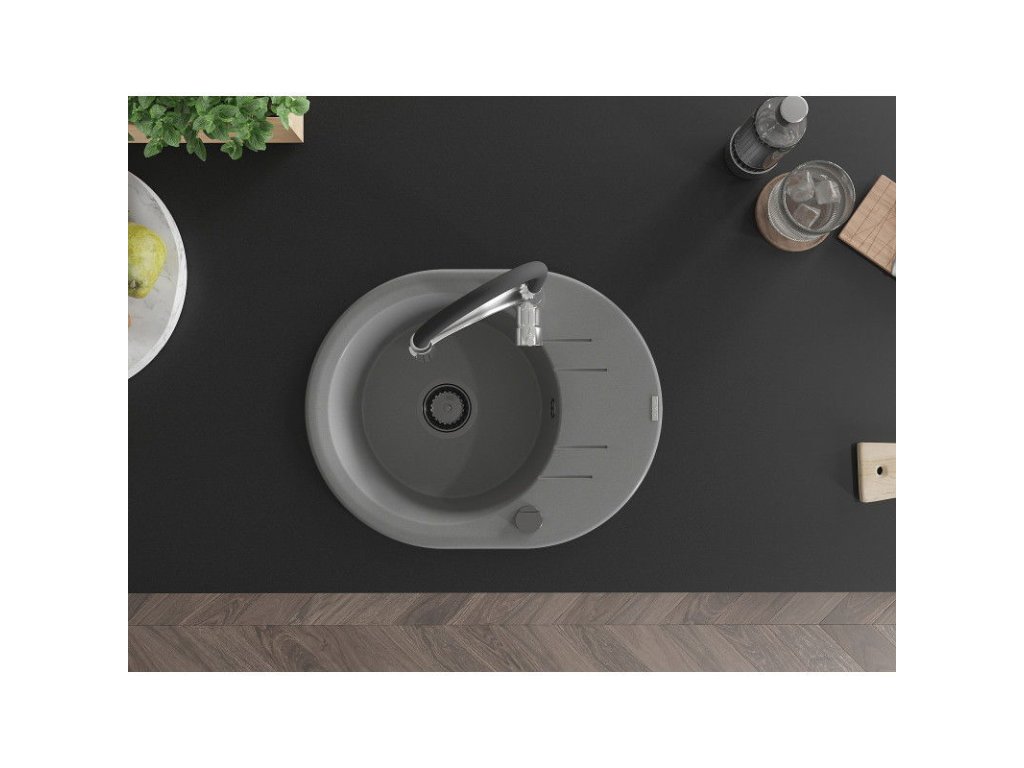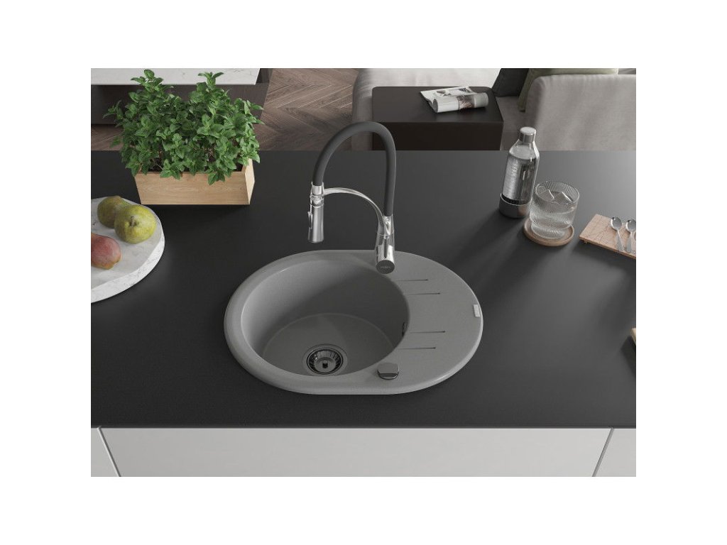 Granitový drez Mexen Kevin s 1 misou, odkapávačom a kuchynskou batériou Aster, sivý - 6517-71-73450-07-B