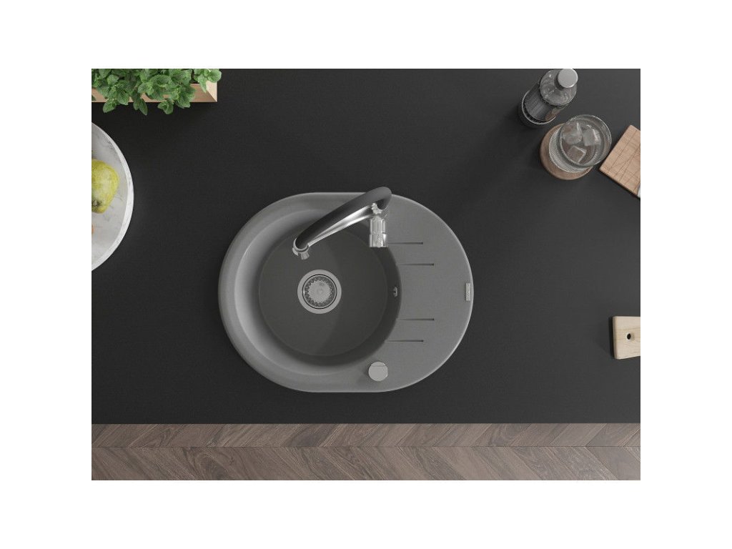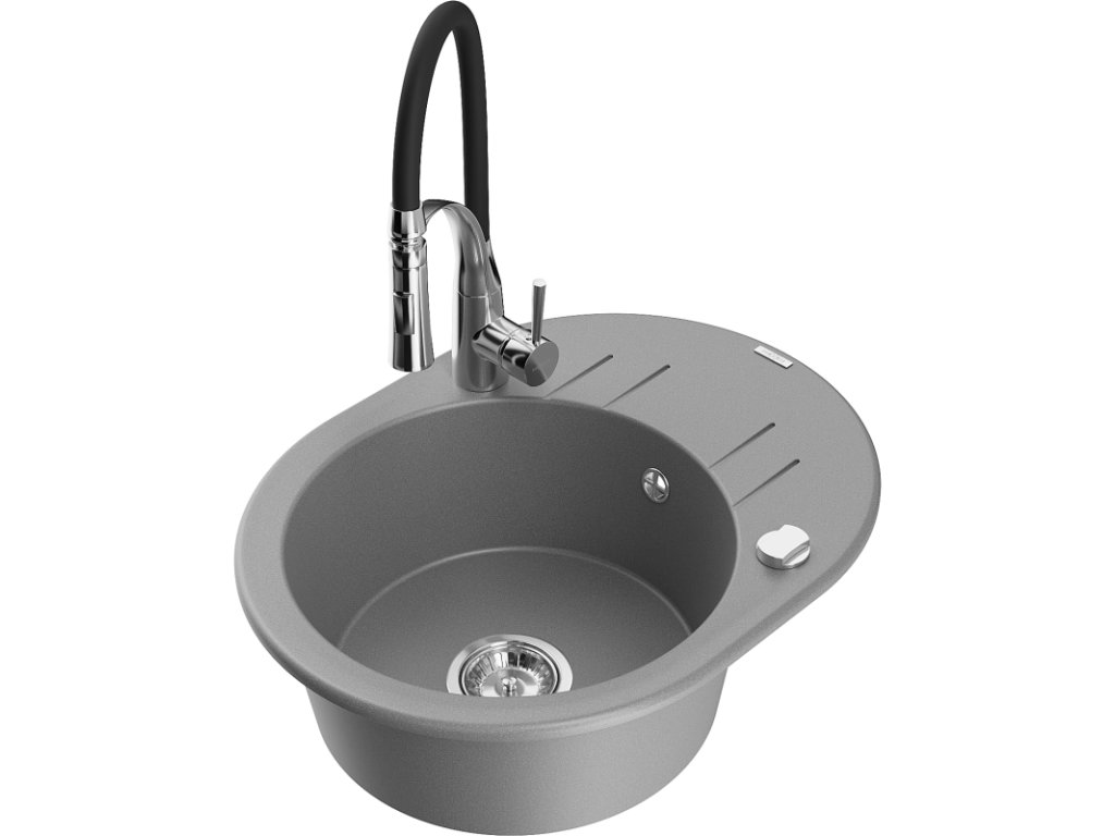 Granitový drez Mexen Kevin s 1 misou, odkapávačom a kuchynskou batériou Aster, sivý - 6517-71-73450-07
