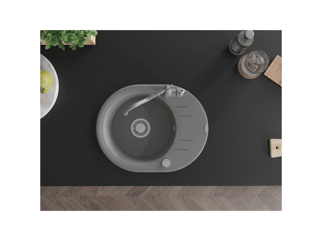 Granitový drez Mexen Kevin s 1 misou, odkapávačom a kuchynskou batériou Carla, sivý - 6517-71-670700-71