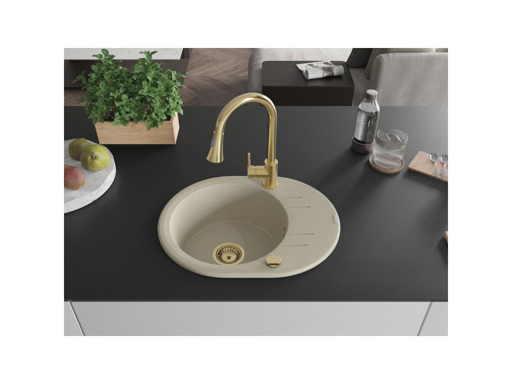 Granitový drez Mexen Kevin s 1 misou, odkapávačom a kuchynskou batériou Elia, béžový - 6517-69-670101-50