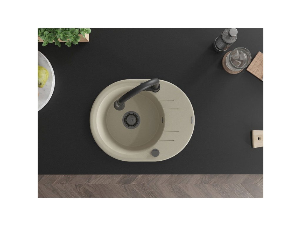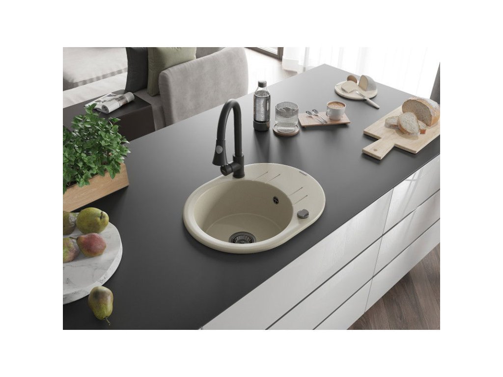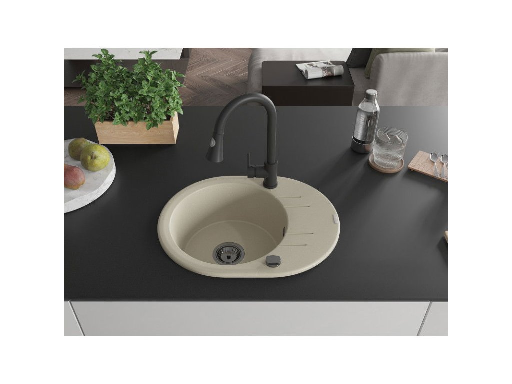 Granitový drez Mexen Kevin s 1 misou, odkapávačom a kuchynskou batériou Elia, béžový - 6517-69-670101-70