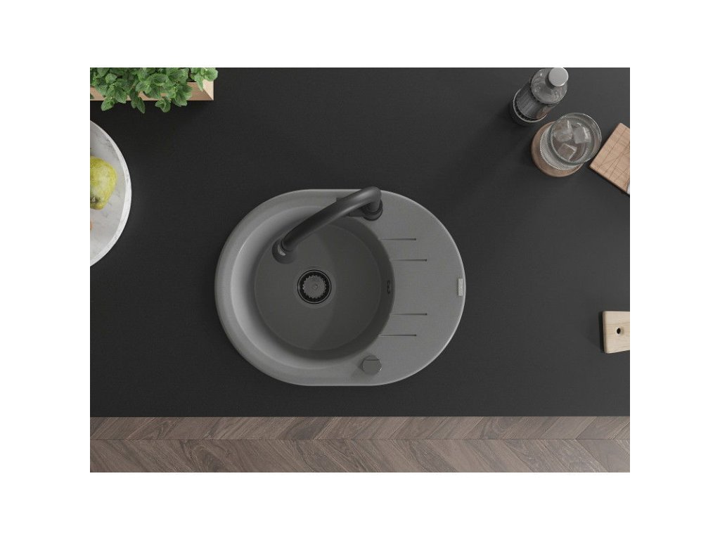 Granitový drez Mexen Kevin s 1 misou, odkapávačom a kuchynskou batériou Elia, sivý - 6517-71-670101-70-B