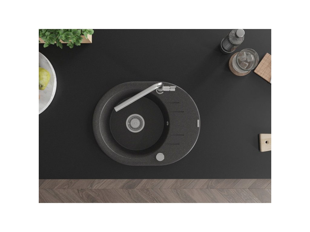 Granitový drez Mexen Kevin s 1 misou, odkapávačom a kuchynskou batériou Flora, čierna škvrnitá - 6517-76-670401-00