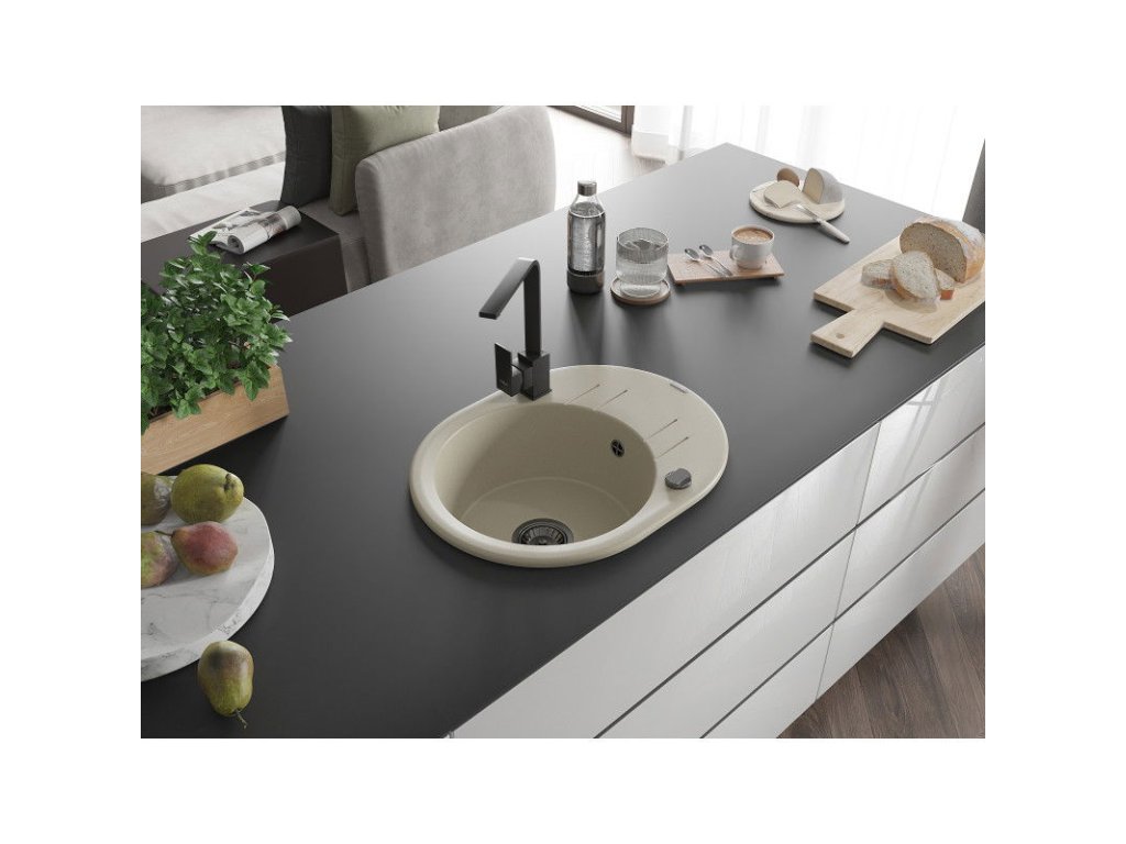 Granitový drez Mexen Kevin s 1 misou, odkapávačom a kuchynskou batériou Rita, béžový - 6517-69-670300-70