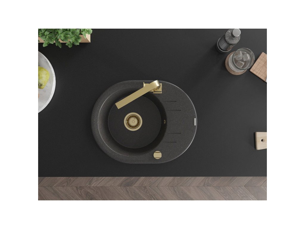 Granitový drez Mexen Kevin s 1 misou, odkapávačom a kuchynskou batériou Rita, čierna škvrnitá - 6517-76-670300-50
